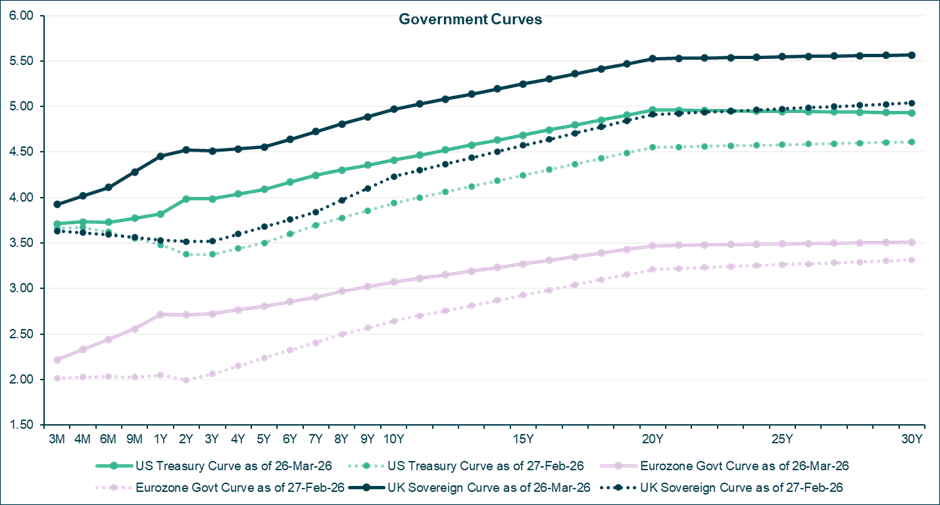 We are somewhat sceptical of the scale of this repricing. The recent rise in yields may represent an attractive entry point for yield seeking investors, particularly as both a rapid resolution and a more prolonged conflict in the Persian Gulf could result in the need for interest rate cuts.